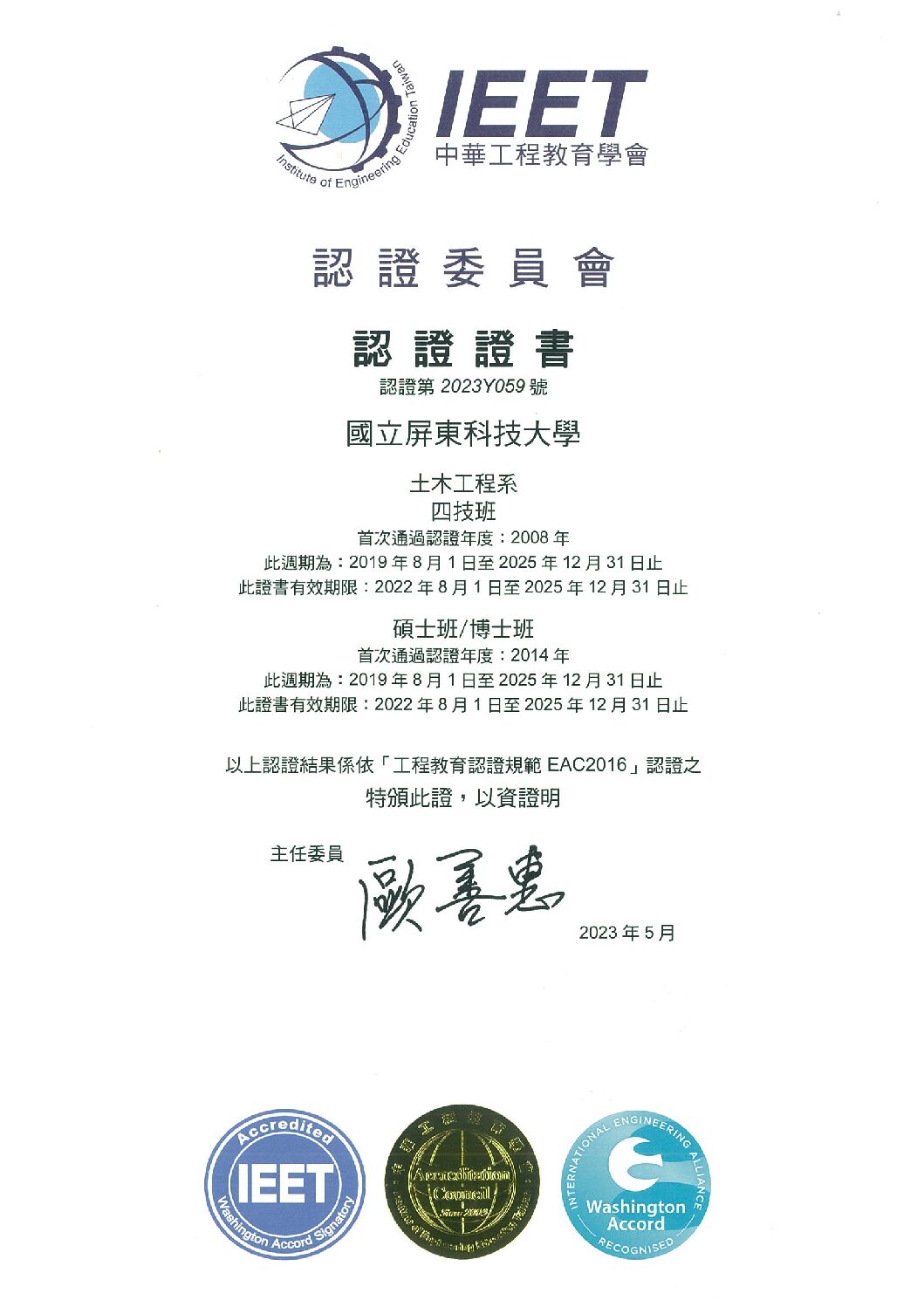 (2023)_國立屏東科技大學_土木工程系中英文通過認證證書